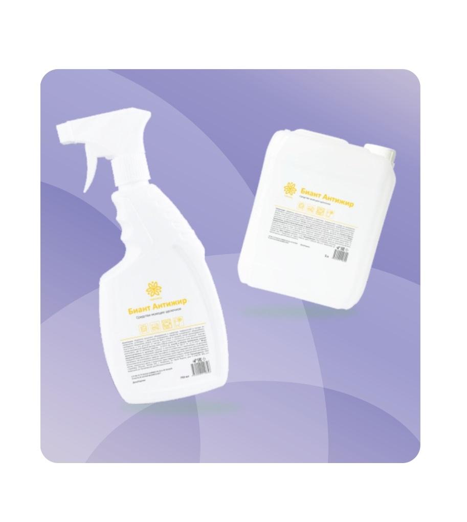 Ph 11,5±0,5 Состав: Концентрированный водный раствор смеси ПАВ не менее 5%, щелочные соли, функциональные компоненты. Антимикробная активность: Бактерии; Вирусы; Грибы. Средство для очистки поверхностей Подходит для обработки кухонного оборудования и инвентаря; Расщепляет жир, нагар, копоть и др.; Используется для предотвращения образования засоров и возникновения неприятного запаха; Не оставляет разводов и не фиксирует органические загрязнения. Области применения: Биант Антижир эффективно удаляет загрязнения с кухонного инвентаря различного типа (раковина, электрическая плита и т.д.)