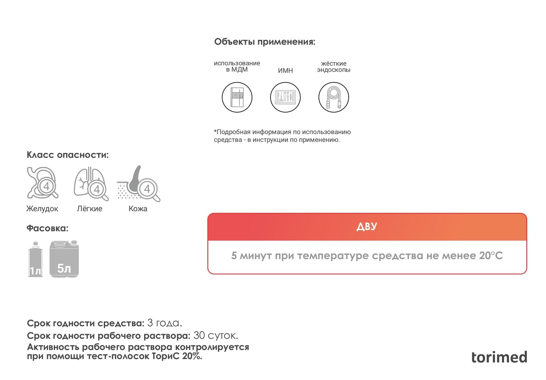 Ph 6,5-8 Состав: Ортофталевый альдегид - 0,55-0,6%, функциональные компоненты. Антимикробная активность в отношении: Бактерии (грамотрицательные и грамположительные, включая микобактерии туберкулеза (тестировано на M.terrae); Вирусы; Грибы (рода Кандида, дерматофитов, плесневые грибы); Спороцидная активность. Дезинфицирующее средство Подходит для: ДВУ; стерилизации ИМН. Соответствует нормативной документации СанПиН 3.3686-21 п.3605; Обладает низким пенообразованием; Не вызывает разрушения клеевых соединений и помутнения оптики; Не вызывает коррозии металлов, в том числе алюминия и анодированного алюминия. Области применения: ТориС ОПА предназначен для обработки изделий медицинского назначения (включая хирургические и стоматологические, жесткие и гибкие эндоскопы) ручным и механизированным способом.