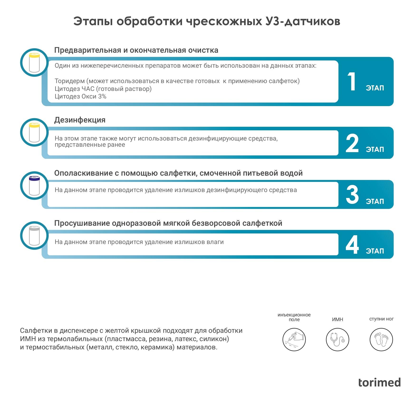 Данная диспенсерная система для обработки чрескожных датчиков УЗИ была создана на основе методических рекомендаций МР 3.1.0284-22. Инновационный подход к дезинфекции медицинских изделий, инструментов и оборудования, благодаря которому биологические загрязнения удаляются за считанные минуты без дополнительных усилий.
